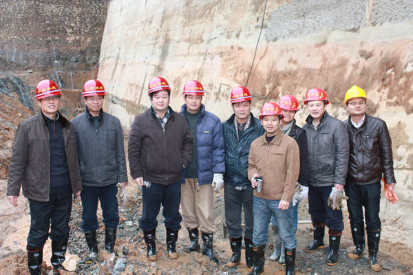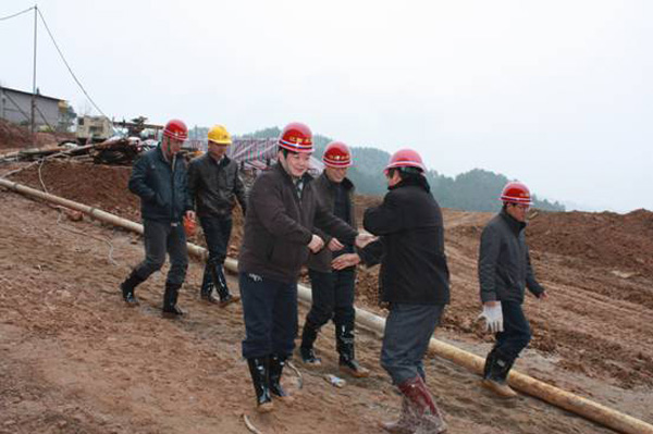 董事長、總經理王元旦一行首先來到基坑澆筑、混凝土攪拌站等施工現場進行察看,與施工人員一一握手,并聽取了春節期間帶領員工奮戰在施工一線的公司副總經理聶玉和的生產情況匯報。董事長、總經理王元旦詳細詢問了攪拌站的生產能力能否滿足施工要求,工程的進展情況及后期施工中的各項措施,對項目部全體員工放棄節假日搶工期、保質量、抓進度的奉獻精神給充分肯定和高度評價,他勉勵大家保證質量安全的前提下,抓緊時間完成大壩防滲面板的施工、再苦再累也要咬緊牙關挺過去,并要求施工項目部合理安排好大家春節期間的工作和生活。