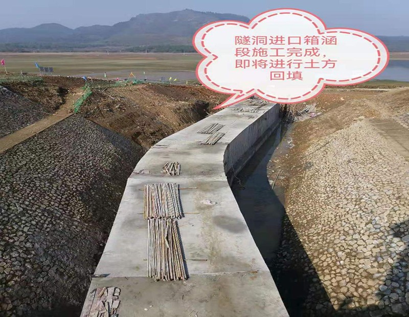工程于2021年10月26日正式開工,目前已完成主要形象進度有:大壩壩坡修整、大壩左岸粘土鋪蓋和粘土斜墻、壩下涵管內(nèi)襯鋼管、隧洞進口箱涵段和泄洪渠1+200~1+975 m,其它項目均按照計劃工期有序推進,圓滿完成2021年度施工任務,為完成2022年安全度汛打下堅實的基礎(chǔ)。