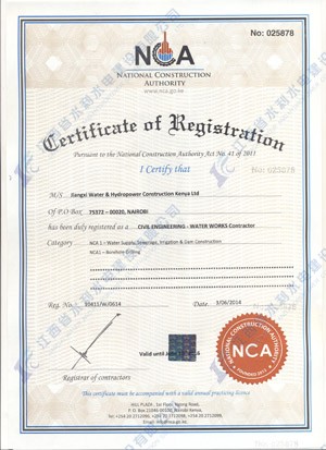 江西省水利水電建設有限公司肯尼亞分公司接到通告后,積極準備相關資料,憑借公司的技術實力和肯尼亞市場的良好業績,最終取得所有六項的一級證書。其中包括:水利施工一級,公路工程施工一級,房屋建筑工程施工一級,結構施工一級,電力工程施工一級和機電工程施工一級,有力地提升公司的品牌影響,提升了公司資信競爭力,為公司在肯尼亞各項工作的全面深入開展創造了積極有利的條件。