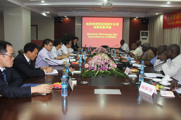 2014年9月上旬,肯尼亞茶葉發展有限公司董事Philip Kibirech NG’Etich先生一行七人應邀來我公司參觀考察,旨在加深雙方了解和建立互惠共贏的合作??偨浝硇旌榱即砉緦λ麄兊牡絹肀硎緹崃覛g迎,總會計師王義生、總工程師胡鴻煌及海外公司相關負責人參加了會見并陪同肯尼亞客人參觀了公司總部各部門。