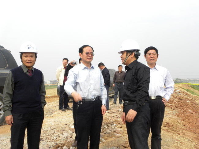 4月1日下午,江西省政協副主席、省政府黨組成員胡幼桃在省防總副總指揮、省水利廳廳長孫曉山,副廳長楊丕龍等人陪同下,來到我公司承建的撫州臨川唱凱堤除險加固(決口段)工程視察指導工作,胡幼桃看望慰問奮戰在一線的施工人員,并聽取撫州市唱凱堤除險加固工程規劃設計、建設進展、質量監督等情況。