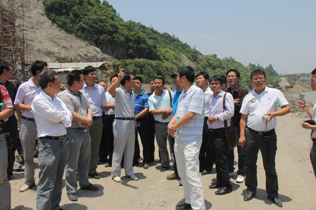 28日,學(xué)習(xí)組在七一水庫管理局葉局長及項目法人謝局長的陪同下先參觀了大壩施工現(xiàn)場,然后參觀了溢洪道。七一水庫除險加固工程由我公司承建,工程質(zhì)量多次受到水利部、省水利廳、地方政府領(lǐng)導(dǎo)的好評。在參觀現(xiàn)場,負(fù)責(zé)該項目施工的項目經(jīng)理彭燦華就如何抓好工程質(zhì)量管理問題向大家作了簡要介紹;總工程師吳鐵凡就如何運用施工技術(shù)、施工工藝來保證工程質(zhì)量進(jìn)行了講解;董事長總經(jīng)理王元旦用風(fēng)趣幽默的提問方式,結(jié)合施工現(xiàn)場情況,對工程質(zhì)量管理的五要素“人、機(jī)、料、法、環(huán)”逐一進(jìn)行了分析闡述,他指出,人是工程管理的首要因素,也是決定因素,如果人沒有質(zhì)量意識,根本不可能生產(chǎn)出讓顧客滿意的產(chǎn)品。同時強(qiáng)調(diào),質(zhì)量是企業(yè)的生命,是企業(yè)發(fā)展的根本保證,在市場競爭十分激烈的今天,如何提高施工質(zhì)量管理水平是每一位項目經(jīng)理、每一位管理者必須不斷思考的問題,他要求大家要向七一水庫施工項目部學(xué)習(xí),學(xué)習(xí)他們抓好每道工序,把握每個環(huán)節(jié),注重每個細(xì)節(jié),踏實做好工程質(zhì)量的敬業(yè)精神,爭取多創(chuàng)優(yōu)良工程、精品工程,進(jìn)一步提高公司的市場聲譽。