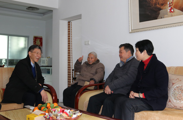 1月22日,省水利廳黨委書記、廳長羅小云率姚毅臣副廳長、廳機關(guān)黨委書記占任生前往公司親切看望慰問離休老干部,公司董事長王元旦等陪同慰問。