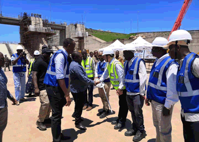 上午10點(diǎn),總統(tǒng)閣下從150km外的首都輕車簡(jiǎn)從直抵現(xiàn)場(chǎng),下車后就直奔溢洪道,視察現(xiàn)場(chǎng)生產(chǎn)情況,并親切接見(jiàn)了我公司董事、海外執(zhí)行董事張周平先生和項(xiàng)目部成員。