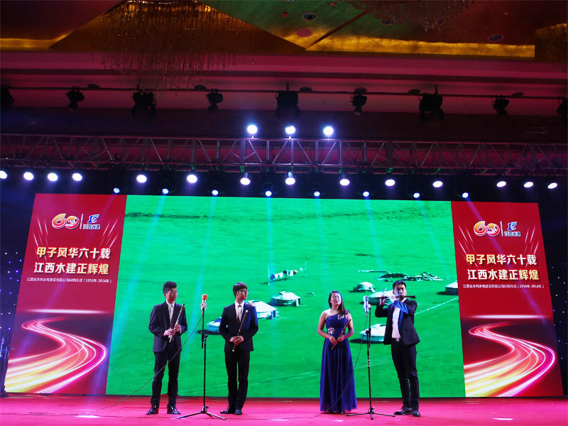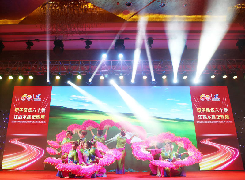 在喜慶熱鬧的開場舞《盛世中華》樂曲聲中,拉開了晚會的序幕,一曲優(yōu)美動聽的《今天是你的生日》,表達了對公司六十華誕的深情祝福,配樂詩朗誦《我驕傲,我是水建人》抒發(fā)了水建人對水利事業(yè)的熱愛與執(zhí)著,舞蹈《我的祖國》,展現了公司退休女職工的精神風采和對公司的深厚感情,男聲獨唱《羅灣那個地方》,喚起了多少“羅灣水建人”曾經在那里生活的記憶,來自上海的退休職工代表,為晚會帶來一首自己改編的歌曲《水建的朋友來相會》,詮釋了他們的激情與夢想,最后,由公司高中層管理人員和總部員工組成的60人大合唱《團結就是力量》,把晚會推向了高潮。團結是我們的力量之源,團結是企業(yè)騰飛的支點,走過了六十年輝煌歷程的江西水建,正在昂首闊步踏上新的征程。讓我們團結起來,以必勝的信心,發(fā)奮的努力,繼承和發(fā)揚老一輩水建人的精神和傳統(tǒng),擔當起新一代水建人改革創(chuàng)新科學發(fā)展的光榮使命,繼往開來,解放思想,開拓創(chuàng)新,凝心聚力,不斷開創(chuàng)江西水建發(fā)展的新局面,創(chuàng)造更加燦爛的明天!